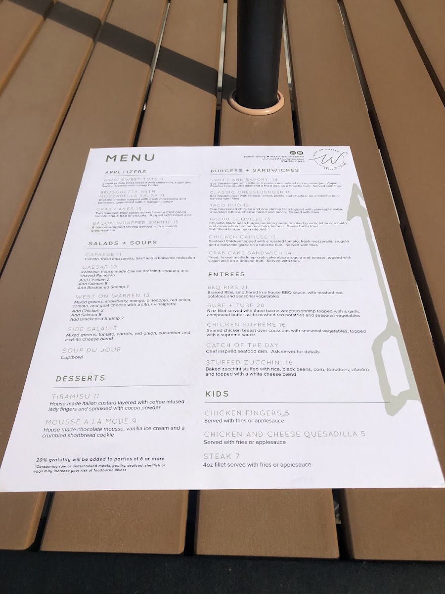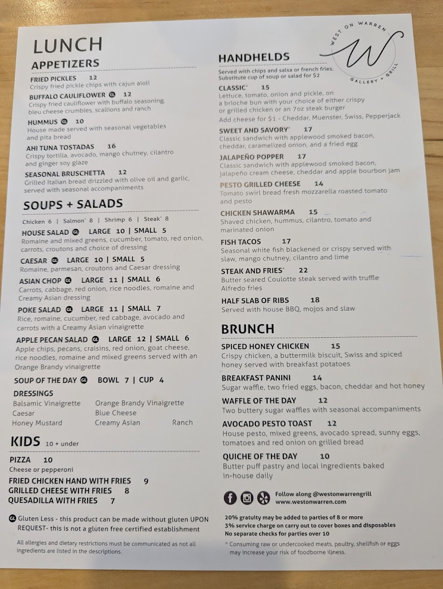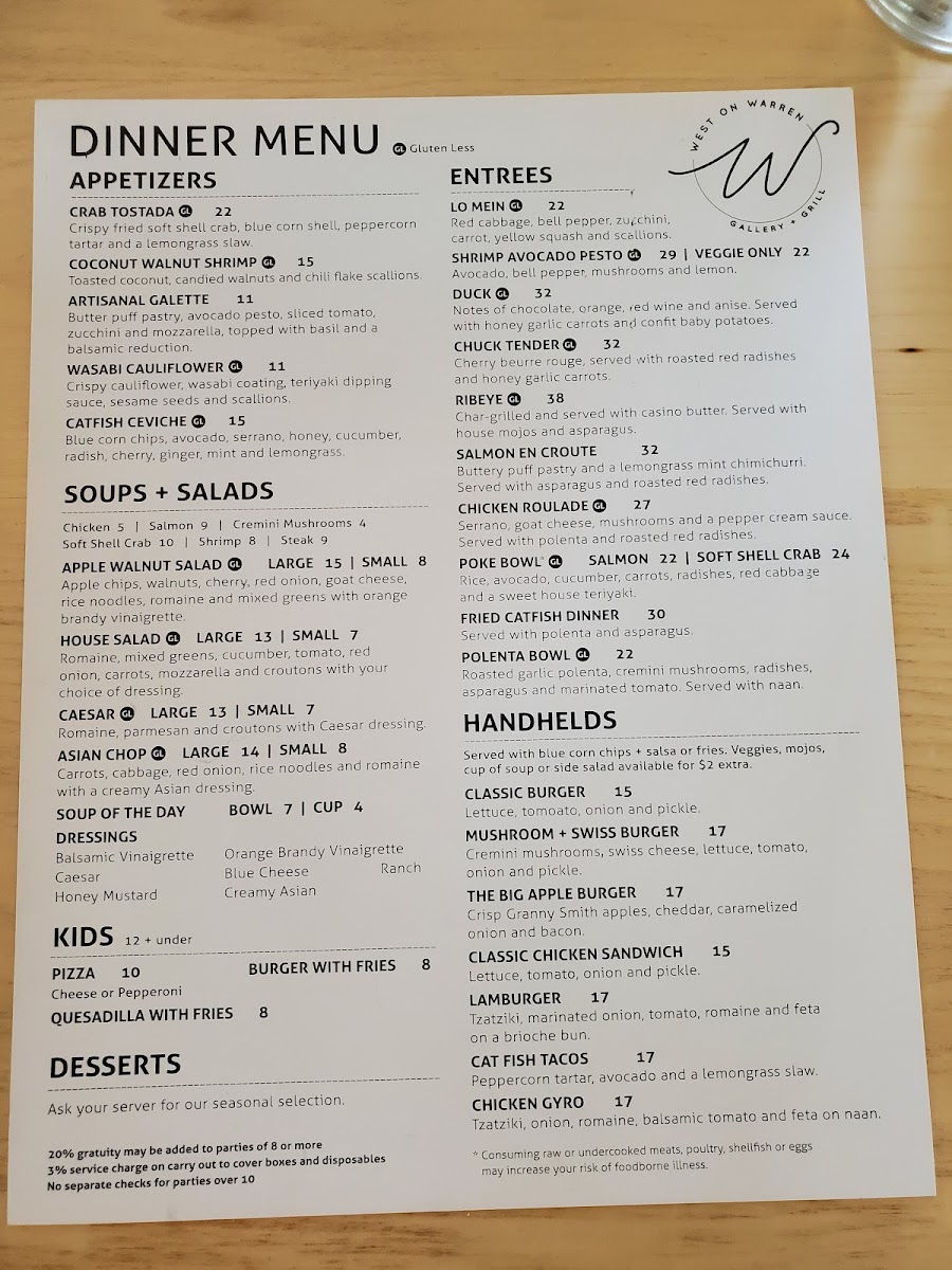 West on Warren Gallery + Grill Menu