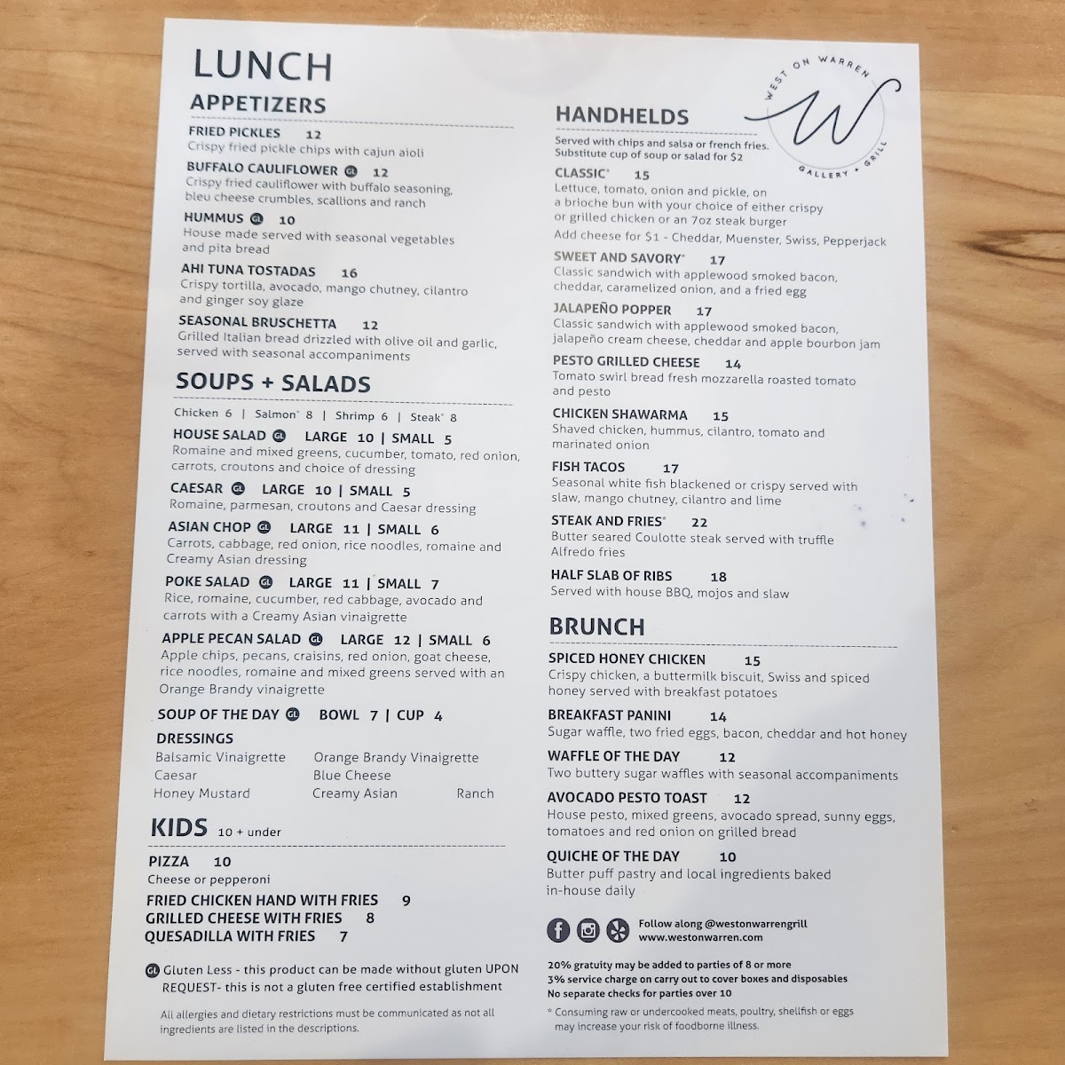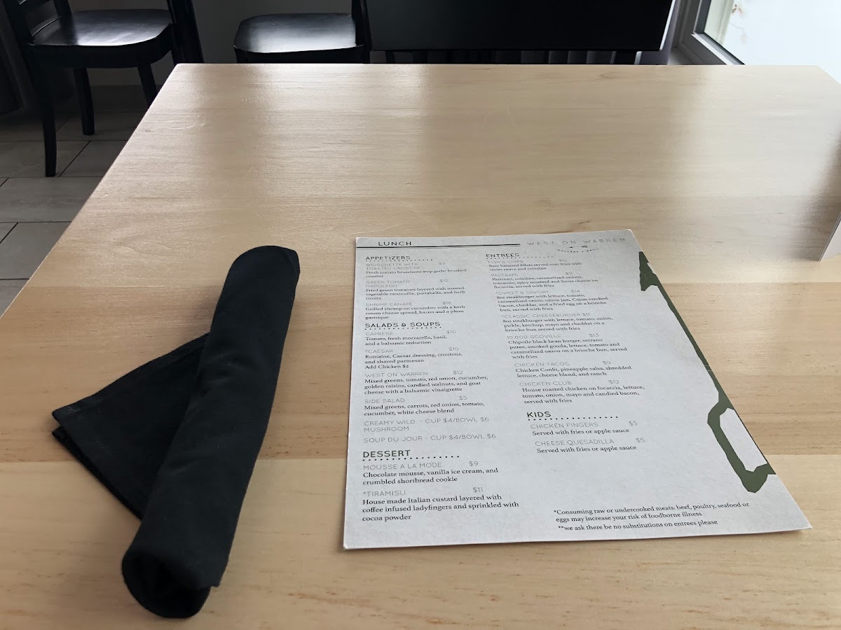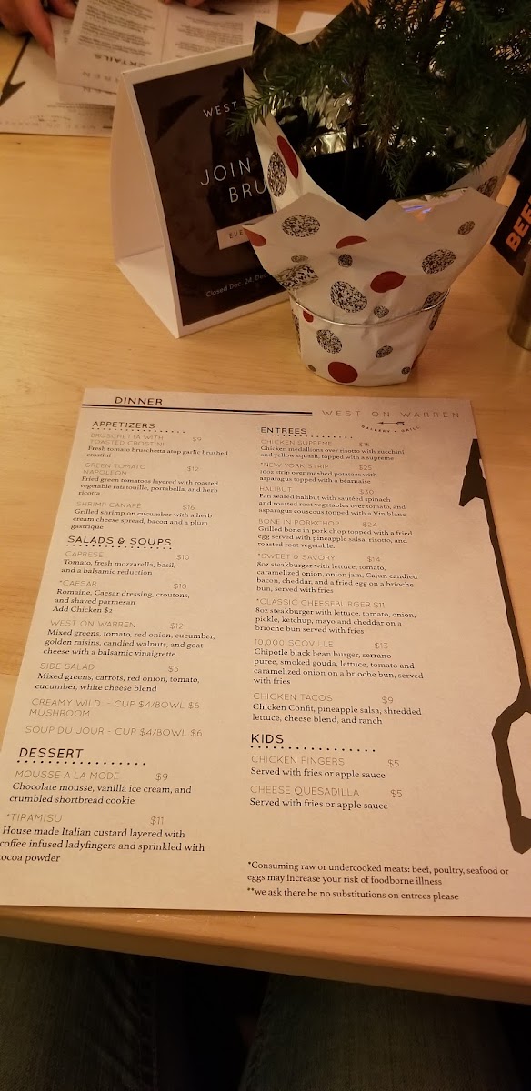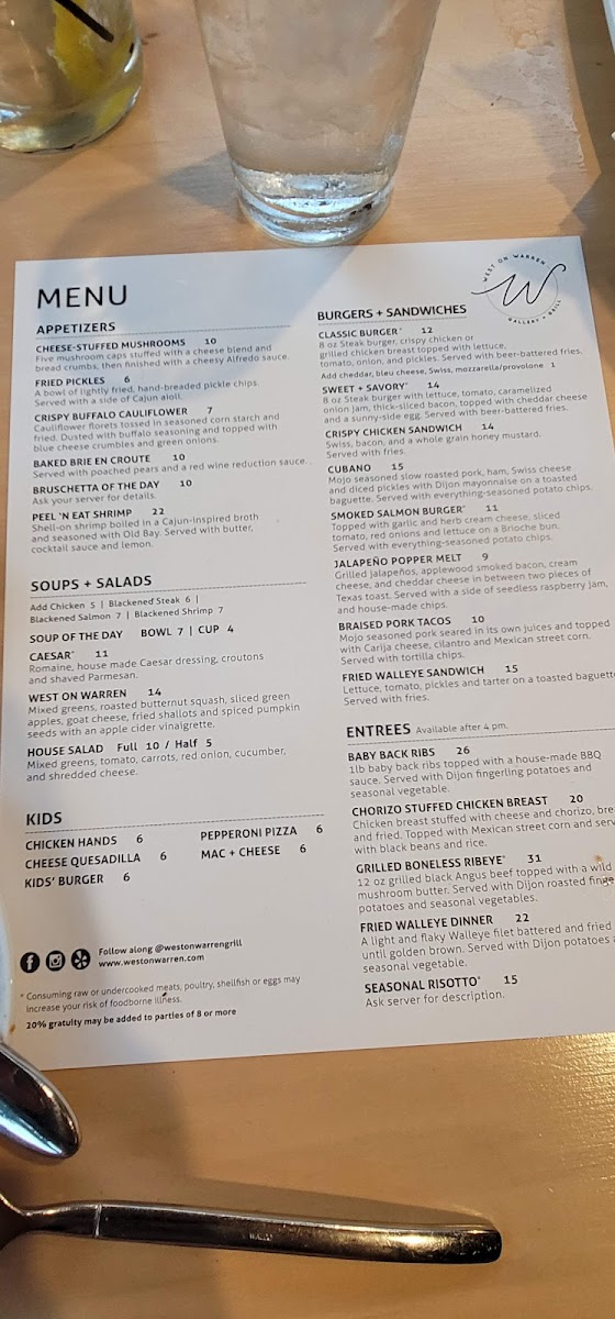 West on Warren Gallery + Grill Menu